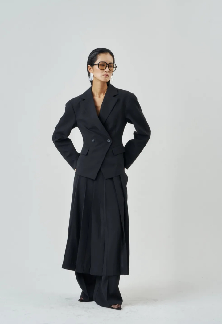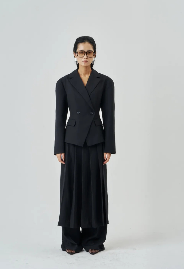 - Design: Classic double-breasted blazer with sharp lapels and tailored fit